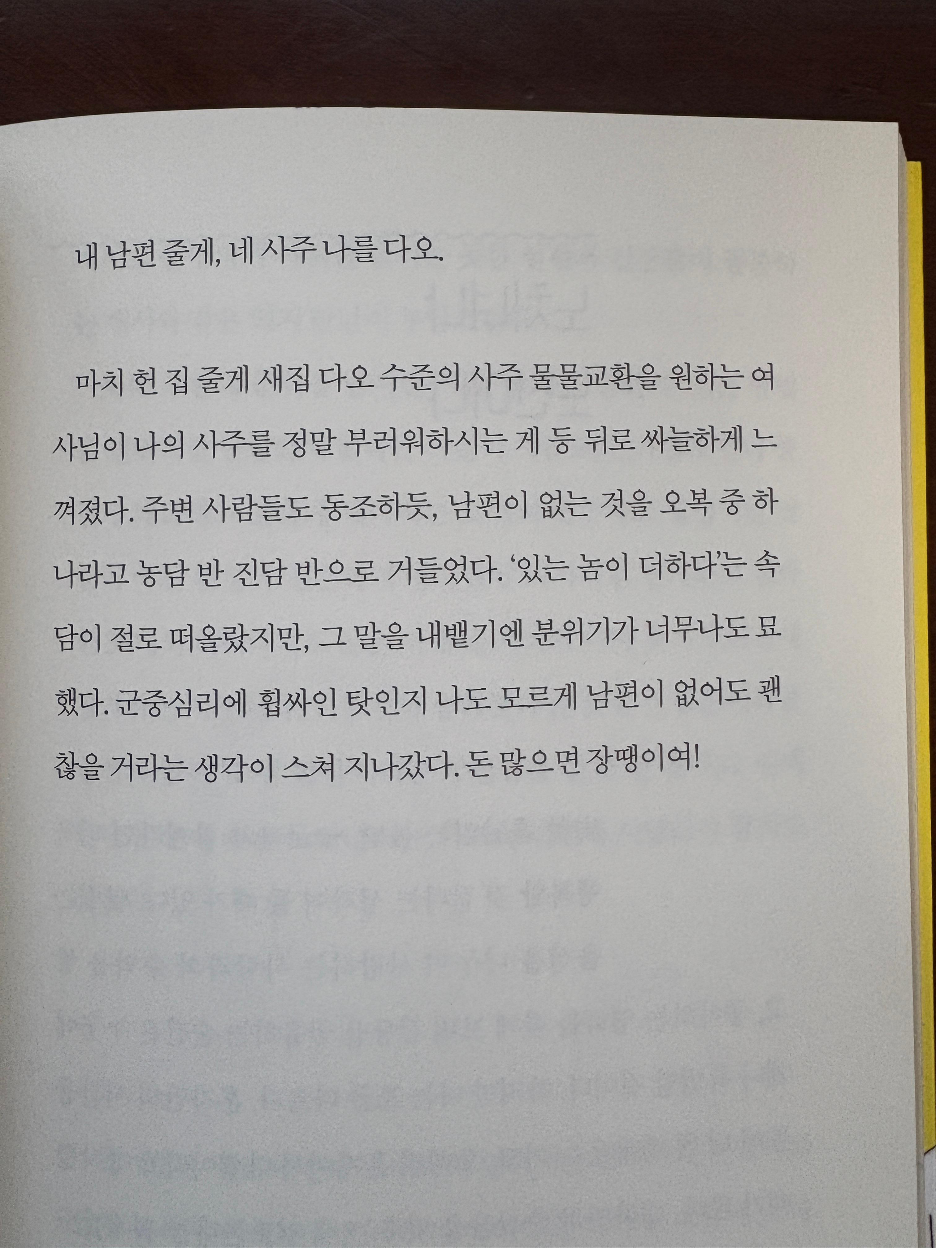 나도 모르게 남편이 없어도 괜 찮을 거라는 생각이 스쳐 지나갔다. 돈 많으면 장땡이여!